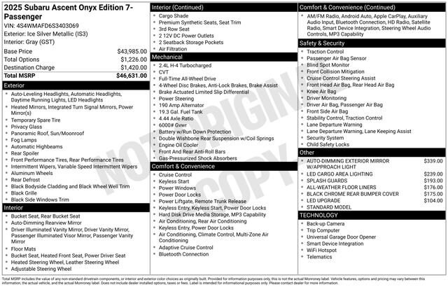 2025 Subaru Ascent Onyx Edition